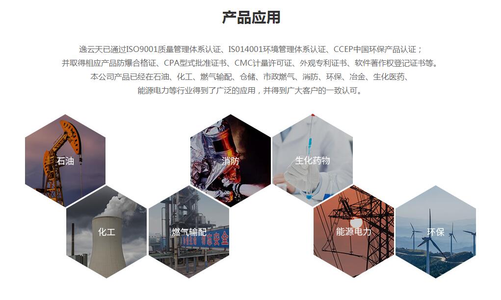 除了石油化工,逸云天氣體檢測儀產(chǎn)品還廣泛應用于燃氣輸配、倉儲、市政燃氣、消防、環(huán)保、冶金、生化醫(yī)藥、能源電力等行業(yè),并得到廣大客戶的一致認可。未來逸云天還將不斷提升核心能力及競爭力,驅(qū)動產(chǎn)業(yè)發(fā)展,為我國氣體安全環(huán)保事業(yè)做出更大貢獻。