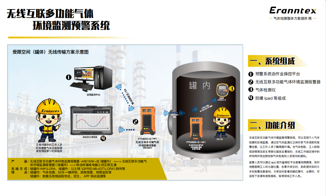 其中,逸云天的無線互聯(lián)受限空間監(jiān)測氣體預警系統(tǒng)技術方案為油罐清罐作業(yè)過程提供有害、易燃易爆氣體在線檢測,可以實時監(jiān)測可燃氣體,氧氣及有毒有害氣體濃度。而無線互聯(lián)受限空間監(jiān)測氣體預警系統(tǒng)技術方案,為隧道、涵洞、儲物間等受限空間作業(yè)提供有毒有害、易燃易爆氣體在線檢測。
